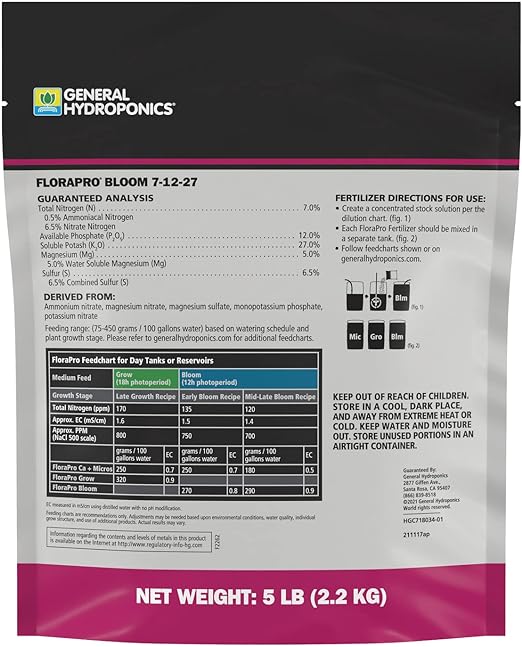 General Hydroponics FloraPro Bloom 7-12-27, Nutrient for Commercial Cultivation, 5 lbs.